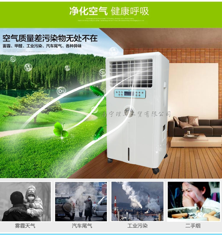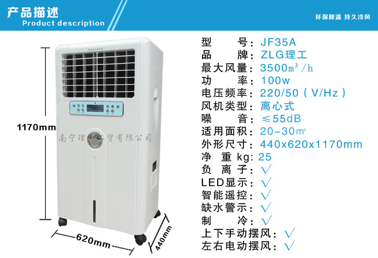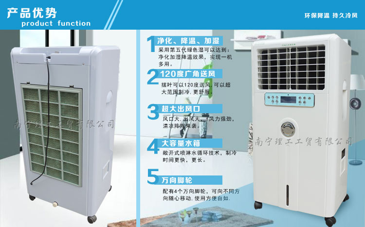 本公司專業(yè)批發(fā)環(huán)?照{(diào)外殼、側(cè)板、鐵殼電機(jī)、鋁合金殼電機(jī)、8葉風(fēng)葉、3葉風(fēng)葉、塑料風(fēng)葉、鐵風(fēng)葉、鋼板支架、鋁合金支架、高腳水泵、潛水泵、進(jìn)水浮球、全鋁合金電動(dòng)擺風(fēng)口、6心電源線、單速控制器、方波220V三相變頻器、方波380V變頻器、正玄波220V三相變頻器、正玄波380V變頻器、遙控220V變頻器。(帶有缺相保護(hù)、過(guò)壓保護(hù)、欠壓保護(hù)、過(guò)流保護(hù)。全電腦控制制冷、風(fēng)速、清洗、電動(dòng)擺風(fēng))節(jié)能環(huán)保空調(diào)機(jī)工作原理: 利用水的自然蒸發(fā)對(duì)空氣進(jìn)行絕熱加濕冷卻稱為蒸發(fā)制冷。人站在海邊感覺(jué)特別涼爽,皮膚表面有水時(shí)風(fēng)一吹就感覺(jué)很涼快,就是因?yàn)樗谡舭l(fā)過(guò)程中吸收了空氣中的熱量,使空氣溫度下降。節(jié)能環(huán)?照{(diào)機(jī)就是利用這一自然現(xiàn)象,將高科技與人工蒸發(fā)制冷技術(shù)相結(jié)合,研制出的新一代科技創(chuàng)新產(chǎn)品,是一種集降溫、換氣、防塵、除味于一身的節(jié)能環(huán)?照{(diào)。 節(jié)能環(huán)?照{(diào)機(jī)適合于敞開(kāi)式或半敞開(kāi)式環(huán)境使用,室外空氣經(jīng)節(jié)能環(huán)?照{(diào)機(jī)過(guò)濾,降溫后形成清潔冷空氣,源源不斷向室內(nèi)輸送,同時(shí)通過(guò)壓排方式將室內(nèi)渾濁的熱空氣排出室外,兼顧了降溫、換氣、增加空氣含氧量等多種功效,特別適用于高溫、異味、污染嚴(yán)重及人群密集場(chǎng)所。 節(jié)能環(huán)保空調(diào)機(jī)優(yōu)勢(shì): 1、蒸發(fā)過(guò)濾網(wǎng)與送風(fēng)面積設(shè)計(jì)標(biāo)準(zhǔn)合理,保證了最佳降溫效果(根據(jù)氣候備件不同送風(fēng)溫差可達(dá)5-15度); 2、采用了專利技術(shù)的高效蒸發(fā)過(guò)濾網(wǎng),確保高效的降溫效果,浸透效率高達(dá)90%; 3、選用高品質(zhì)全封閉電機(jī),散熱好、防護(hù)等級(jí)高、溫升穩(wěn)定、防水防潮、美觀耐用; 4、針對(duì)蒸發(fā)式冷氣機(jī)自主開(kāi)發(fā)的可隨意自拆卸的蒸發(fā)網(wǎng)框架,更有利于設(shè)備的清洗、維護(hù); 5、獨(dú)創(chuàng)的開(kāi)敞式的水分布器,使水流均勻流暢;設(shè)有全自動(dòng)定時(shí)清洗功能,定時(shí)去污除垢、確保水質(zhì)清潔,即保證了設(shè)備的制冷效果,延長(zhǎng)蒸發(fā)網(wǎng)的使用壽命,又大大減少了維護(hù)工作量; 6、自主開(kāi)發(fā)的高品質(zhì)循環(huán)水泵、保證供水穩(wěn)定。設(shè)有水泵缺水保護(hù)功能,確保缺水狀態(tài)下有效保護(hù)水泵; 7、從小風(fēng)量機(jī)型到大風(fēng)量機(jī)型多品種選擇,能最大限度滿足不同場(chǎng)所的使用要求。 節(jié)能環(huán)保空調(diào)主要特點(diǎn): 1、投資省,比平時(shí)的空調(diào)能少50%以上的設(shè)備投資 2、運(yùn)行費(fèi)用低,比傳統(tǒng)空調(diào)省電80%以上 3、全新風(fēng)運(yùn)動(dòng),增加空氣含氧量 4、降溫、換氣、防塵、除味四合一 5、可用于全面降溫或崗位降溫調(diào)節(jié)濕度,提高人體舒適度 6、安裝便捷,利于環(huán)保